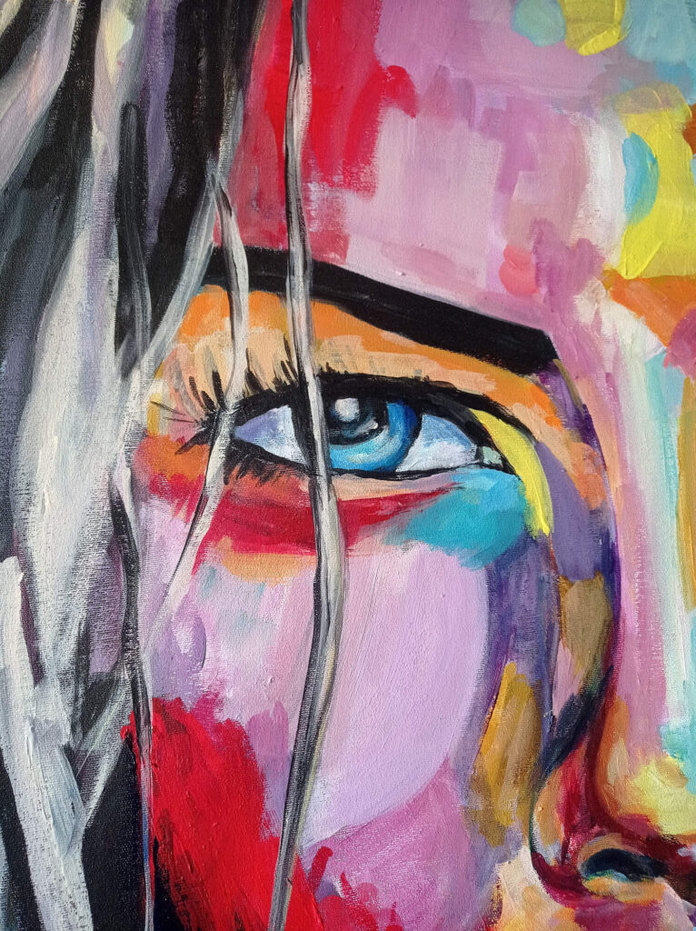 „Power Woman” to portret kobiety zmysłowej i pewnej siebie – odważny, nasycony intensywnym kolorem, przyciąga spojrzenie jak magnes. Chłodne, nieco nieobecne spojrzenie, lekko przygryzione usta i silna, niemal prowokacyjna aura tworzą wizerunek, w którym siła spotyka się z pożądaniem. To obraz kobiecości bez kompromisów – magnetycznej, nieuchwytnej, hipnotyzującej.